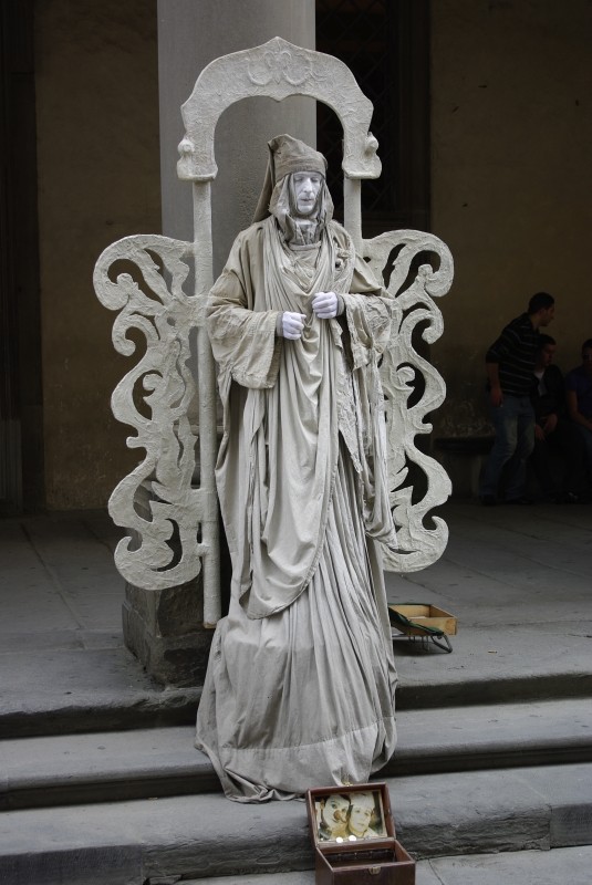 Alors là la photo ne possède pas le mot-clé "vieilles pierres"... Mime au Musée des Offices. Après toutes ces statues, c'est confondant !